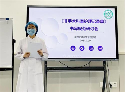 舒俊组长对各位老师的到来表示欢迎。介绍了本次研讨会召开的目的:为进一步推进《非手术科室护理记录单》书写规范工作,诚挚邀请护士长参与讨论,反映临床问题,探讨解决方案。