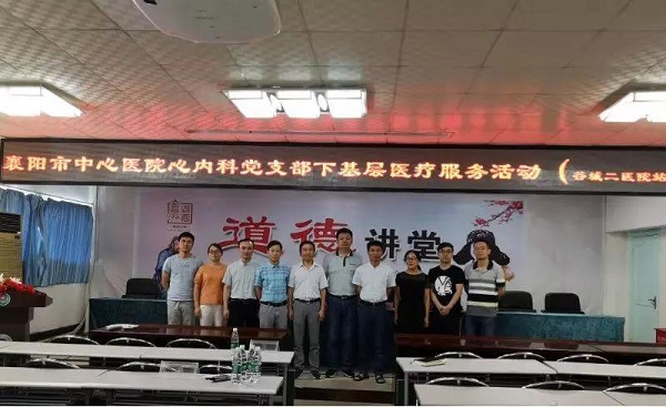 心血管内科主任朱锐,为谷城县第二人民医院全体内科医师讲课“全球心机梗死新定义”,支部书记汤永谦讲课“快速心律失常临床处理”,极大地提高了下级医院医生对“心肌梗死”的认识,对“心律失常”处理原则的把握。与此同时,广大党员深入病房,一对一解决疑难危重患者面临的诸多问题,受到当地医生和患者的好评。