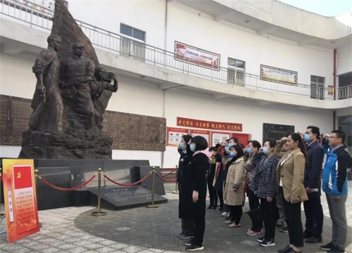 在革命烈士馆先烈雕像前,支部全体党员面向党旗,高举右拳,郑重宣誓,重温入党时的满腔激情和崇高追求,重温宣誓时的庄严承诺和坚定决心。