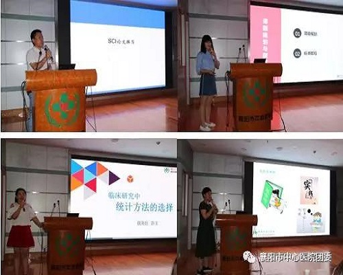 国家自然科学基金面上项目获得者肿瘤科副主任龚伟博士、国家自然科学基金获得者药学部副主任卞芳博士、医务处陈玉老师、医院学术评价系统综合评分第一名肿瘤科谷小燕老师分别以《SCI论文撰写》《课题申报及文章投稿》《临床研究中统计方法的选择》《从工作中发现论文写作切入点》为题,结合个人工作实际及科研经验,对青年团员如何进行SCI论文撰写、科研课题申报、论文投稿技巧、临床试验与统计学分析、寻找论文写作切入点等方面进行了经验讲授,并在会后与青年团员进行了交流互动,赢得了阵阵掌声。